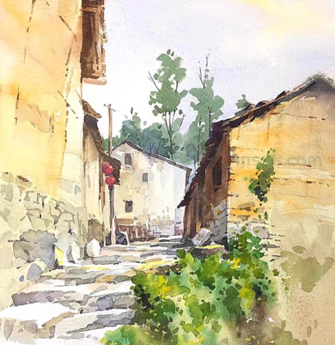 控制混色种类是基础。水彩的通透感源于颜色的纯粹性,混色种类越多,越容易偏向浑浊的灰色调。新手应严格遵循“三色原则”,单次调色最多使用三种颜色。比如调清新的草木绿,黄色加蓝色就足够;想营造暖调绿,只需少量添加赭石,切忌将红、黄、蓝等多种颜色随意混合,否则极易调出脏色。同时要遵循色环规律,优先选择120度夹角内的邻近色混色,比如橙与紫、黄绿与蓝,这类颜色搭配和谐,不易产生冲突。