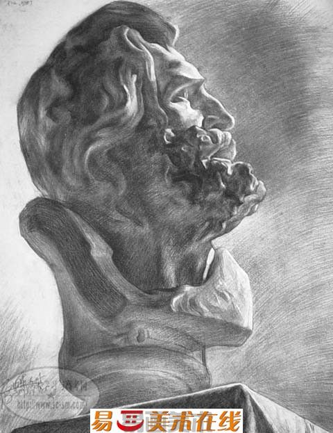 1.空间表现的错误:近处主要形体刻画草率,而远处的次要部分经营过多,明暗层次过于繁杂,需加强对近处物体形体明暗的刻画,减弱较远处物体的明暗的层次。