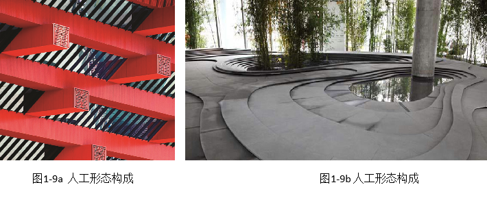 人工形态的构成是指人类有意识地从事视觉要素之间的组合或构成活动所产生的形态。它是人类有意识、有目的的活动创造结果。如建筑、雕塑、汽车、服装、桌椅等(图1-9)。