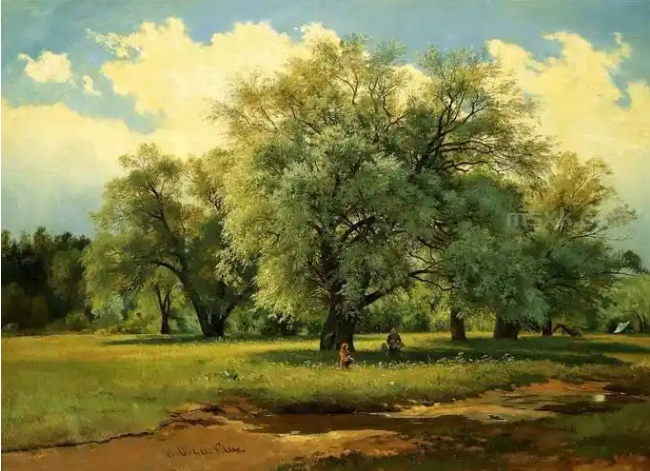希施金在作品中运用了丰富的色彩,他善于将不同的色彩进行和谐的组合,以表现出森林的多样性和丰富性。同时,他还通过色彩的对比和渐变来增强画面的视觉冲击力。希施金在构图上注重平衡感和节奏感。他通过合理安排画面中的元素,使得整个画面既稳定又富有变化。同时,他还巧妙地运用了透视原理,将观者的视线引向画面深处,增强了画面的空间感。