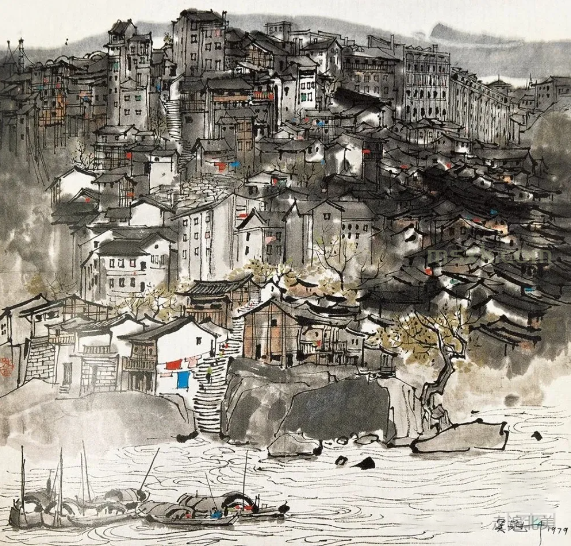 吴冠中先生的长江系列作品以长江的波涛为背景,气势为灵感,用国画的笔触,将山的巍峨和长江的流动转化成了意境浓厚的画面。