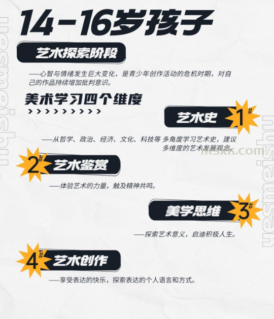 4-16岁孩子的美术学习线路规划可以分为以下几个阶段:
