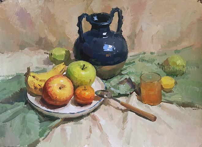 以上只是我在教水粉静物中有些粗浅体会,因篇幅所限,就不再深入探讨了,其实,我想教师的目的就是起着一种文化传递作用,这种传递先是继承前人的优秀传统,后是挖掘学生们创作的潜力,这两点缺一不可,尤其是在基础的教学中。