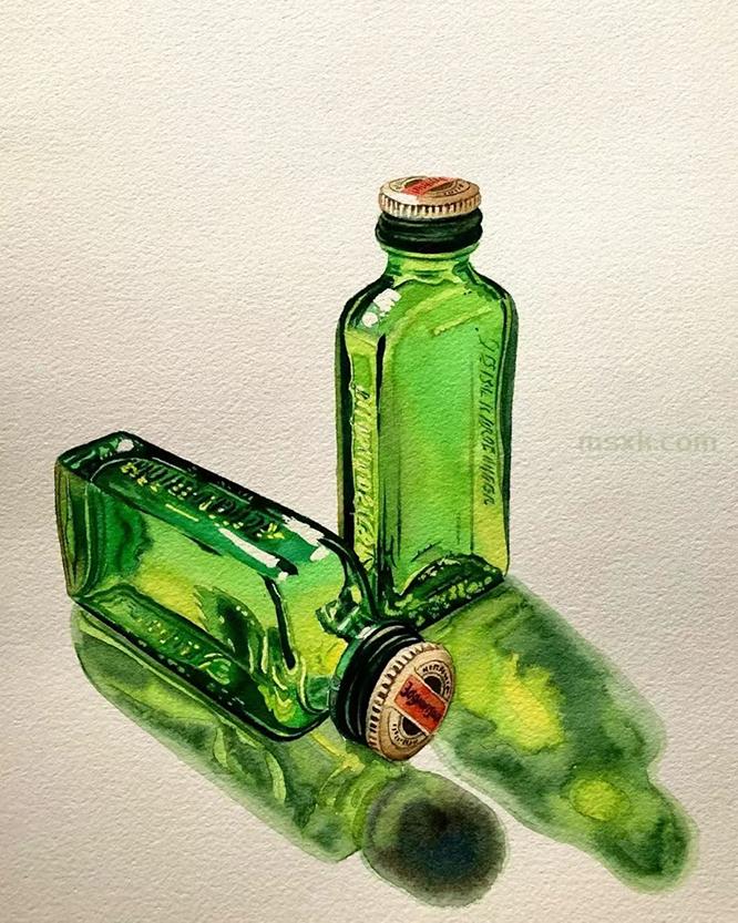 塞尔皮尔·乌米特(Serpil Umit)是一位来自土耳其的水彩画家,以其对玻璃器皿的精湛描绘而闻名于世。她画了1000个瓶子,这水彩质感堪称一绝!隔着屏幕都听到“叮当”声,忍不住再看“亿”遍。日复一日,一张又一张,不厌其烦的去追求画的真实与玻璃的质感,美在每一个细节里。即使这样的作品再多,也无法让人拒绝再看“亿”遍!