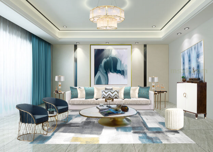 在进行软装搭配设计的时候,不得不考虑的一个问题就是颜色,一般的家装原则就是一个房间不要使用超过三种颜色,而白色可以说是百搭色。对于软装的颜色,要注意空间里色调的变化,客厅一般以白色,黄色为主,卧室以暖色为主,而书房一般以浅蓝,嫩绿,白色等冷色调为主。所以选择合适的基础色是软装色彩搭配的关键。一般来说,中性色如白色、灰色、米色等是较为常用的基础色。白色可以使空间显得明亮、宽敞;灰色则更具现代感和沉稳气质;米色给人温馨舒适的感觉。这些基础色可以大面积应用于墙面、地面和大型家具上,为整个空间奠定基调。