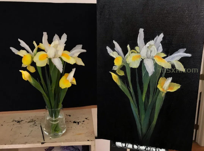 在花卉作品中,学生们巧妙地捕捉了花瓣的细腻纹理和色彩变化,使得每一朵花都栩栩如生,仿佛能够闻到花香。他们运用不同的笔触和色彩层次,将花卉的娇艳与生机展现得淋漓尽致。特别值得一提的是,几位学生在处理光影效果时表现出色,使得画面呈现出一种温暖而柔和的氛围。