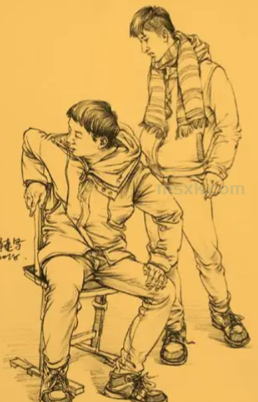 速写陷入瓶颈时,不妨先放下笔,重新学习 “观察”。很多人习惯盯着局部细节死磕,比如衣领的褶皱、手指的关节,却忘了整体的动态和比例才是画面的骨架。试着像用广角镜头看世界那样,先捕捉人物最显眼的姿态,是弯腰时脊柱的S形曲线,还是站姿中重心偏向一侧的倾斜感,用轻松的线条快速勾勒出这种整体印象,再慢慢填充细节,你会发现画面的生动感会自然浮现。