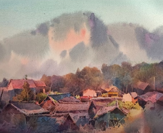 控制混色种类是基础。水彩的通透感源于颜色的纯粹性,混色种类越多,越容易偏向浑浊的灰色调。新手应严格遵循“三色原则”,单次调色最多使用三种颜色。比如调清新的草木绿,黄色加蓝色就足够;想营造暖调绿,只需少量添加赭石,切忌将红、黄、蓝等多种颜色随意混合,否则极易调出脏色。同时要遵循色环规律,优先选择120度夹角内的邻近色混色,比如橙与紫、黄绿与蓝,这类颜色搭配和谐,不易产生冲突。